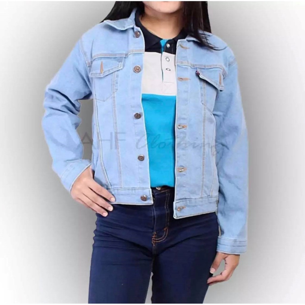 JAKET JEANS LEVIS CEWEK WANITA MURAH BIRU PUDAR BIRU . Sumber Gambar : shopee.co.id
